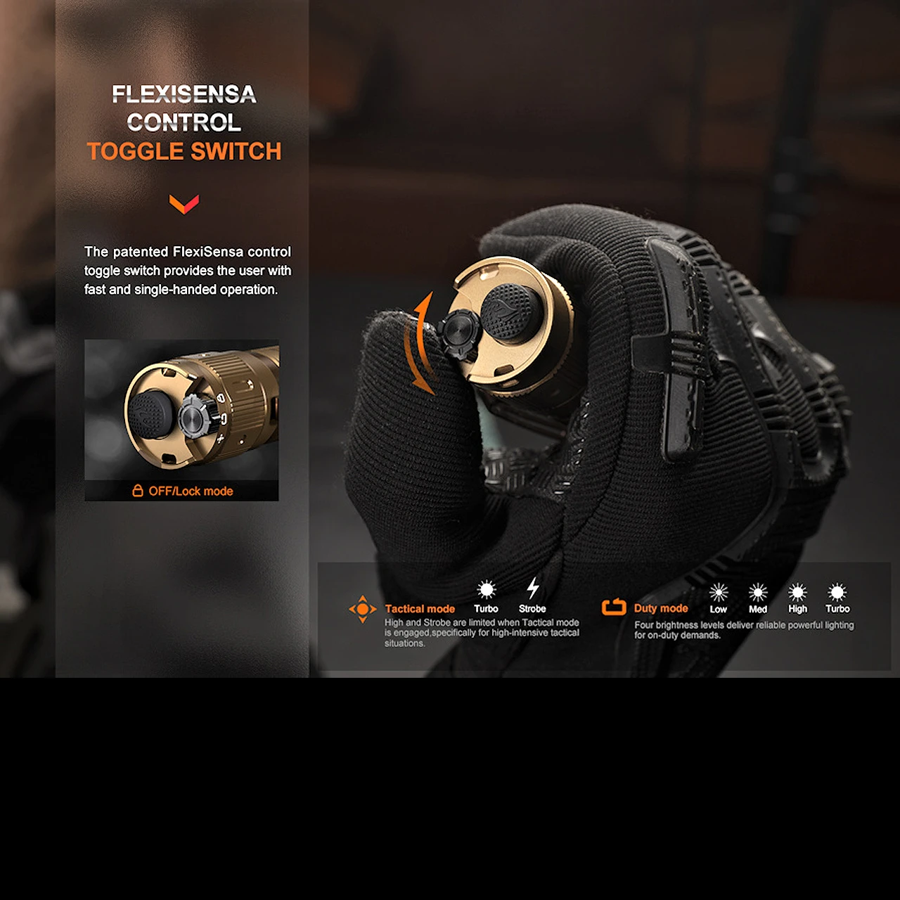 - Mode Shifting: Utilize FlexiSensa to shift between Lock, Duty, and Tactical.